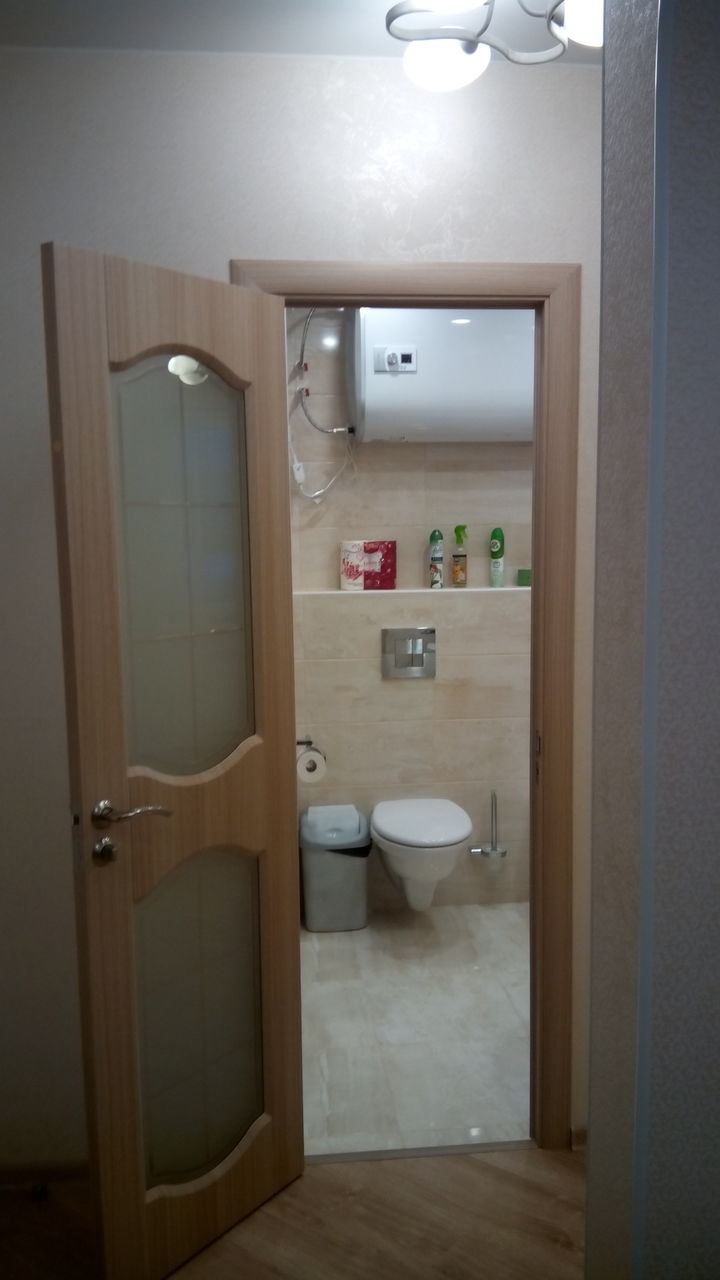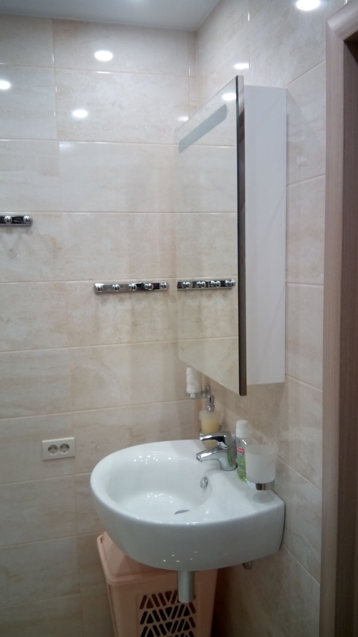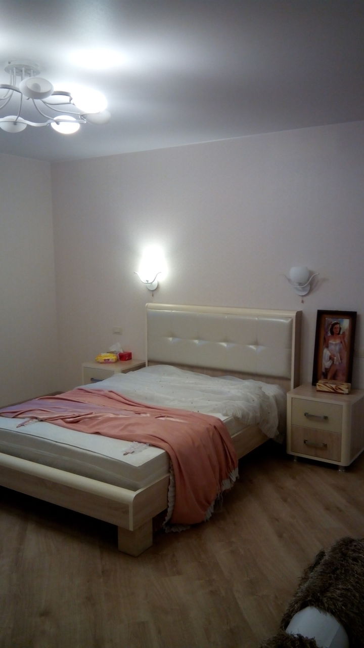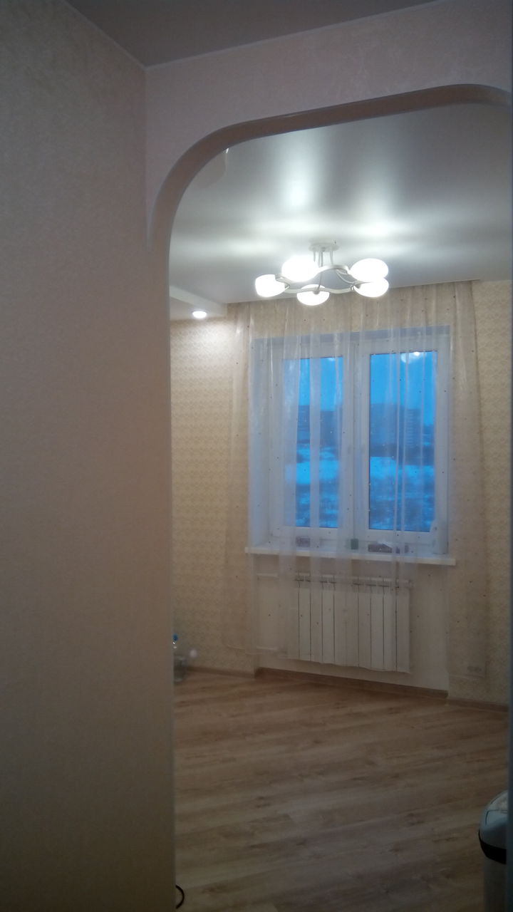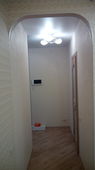 Квартира была полностью без отделки, в панельном доме в 7-ом микрорайоне. Все сделано с "нуля", включая небольшую перепланировку в коридоре, что позволило создать ниши под шкафы-купе с коридора и комнаты. По решению заказчика от дверей, кроме санузла, было решено отказаться, дверные проемы оформлены арками.