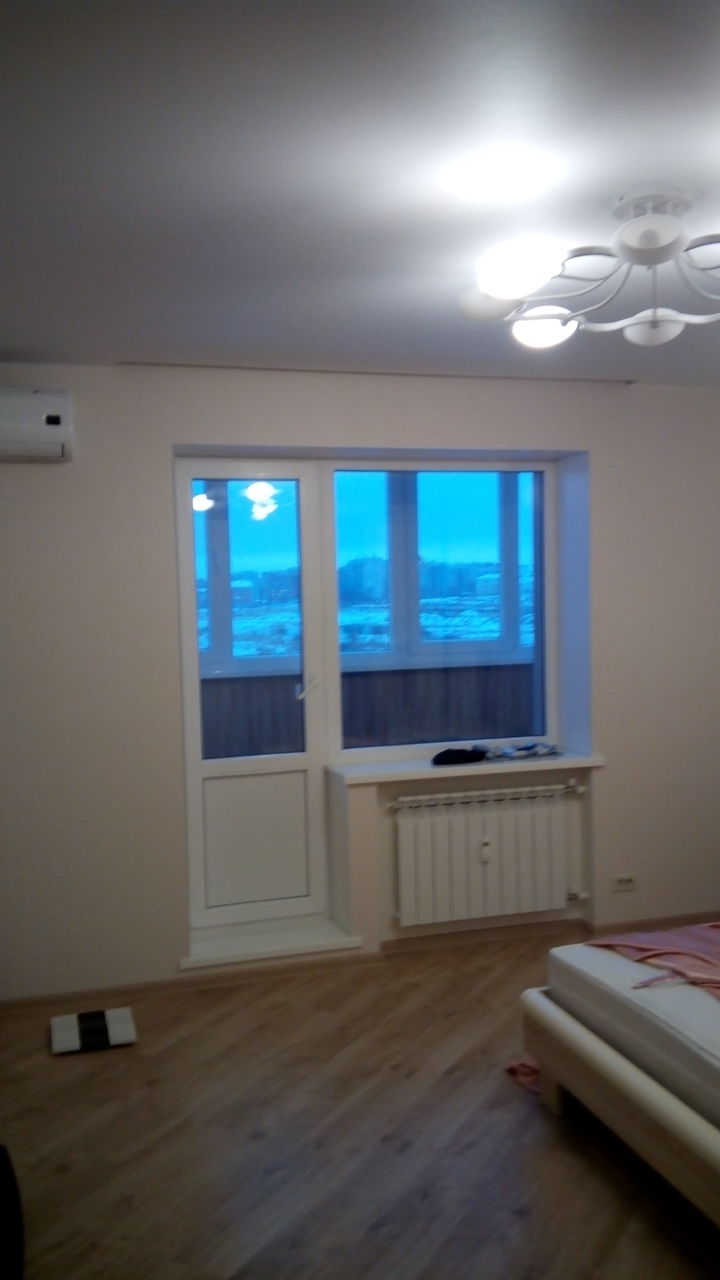 Установленны новые пластиковые рамы, выполнена отделка балкона-стены МДФ; потолок пластик. Замена радиаторов отопления на биметаллические. В ванной комнате выполнены разводка труб, канализации,установлены под унитаз и биде, инсталяции, плиточные работы.